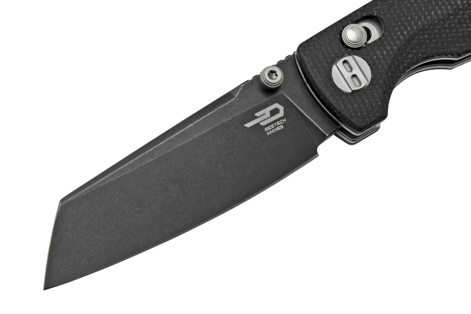 Le Bestech Slasher BG43A-2 est un magnifique couteau de poche, au design bien pensé jusque dans les moindres détails. Cela se voit bien sur le clip de poche, intégré de façon très harmonieuse sur le manche en micarta. La lame est en acier D2 et s’ouvre grâce à un repose-pouce. Une fois ouverte, elle est bloquée par un axis-lock. Ce couteau est très esthétique et convient très bien en everyday carry.