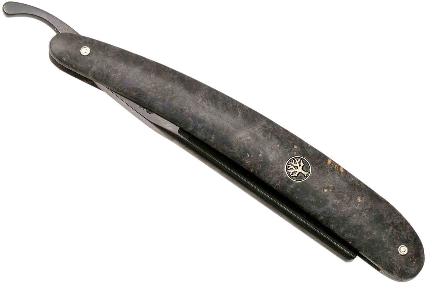Le Böker Manufaktur Solingen Black Amboina est un rasoir coupe-choux de la plus haute qualité. La marque Böker s’est forgé une excellente réputation en fabriquant des rasoirs coupe-choux fantastiques depuis plus de 100 ans. Ce rasoir droit est fabriqué dans l’atelier de Böker situé à Solingen en Allemagne.