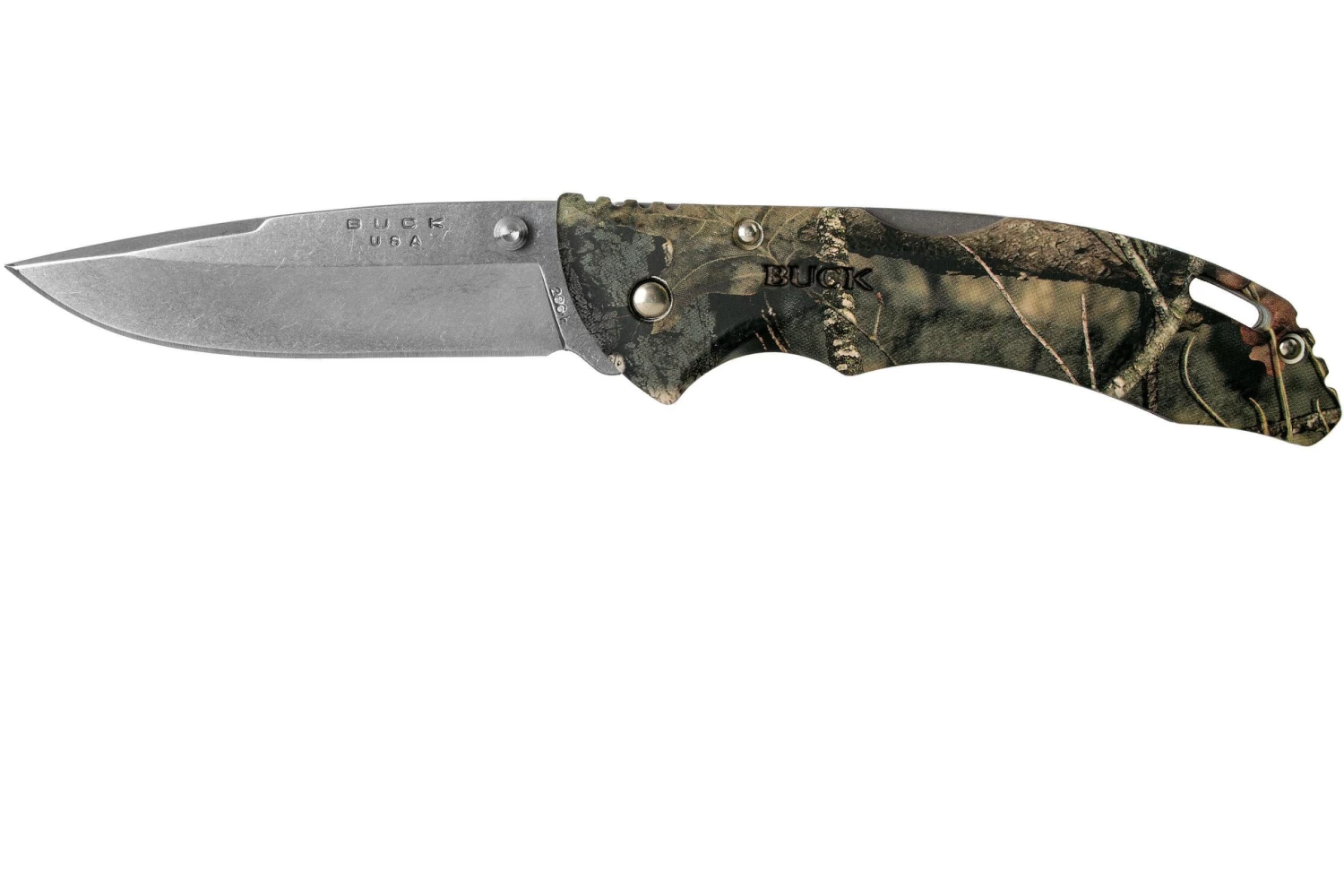 Avec ses 83 grammes, le Buck Bantam est un couteau de poche très lĂ©ger. Le manche est en plastique. Il est dotĂ© d’une impression MossyOak. Un motif populaire aux États-Unis comme motif de camouflage pour la chasse.