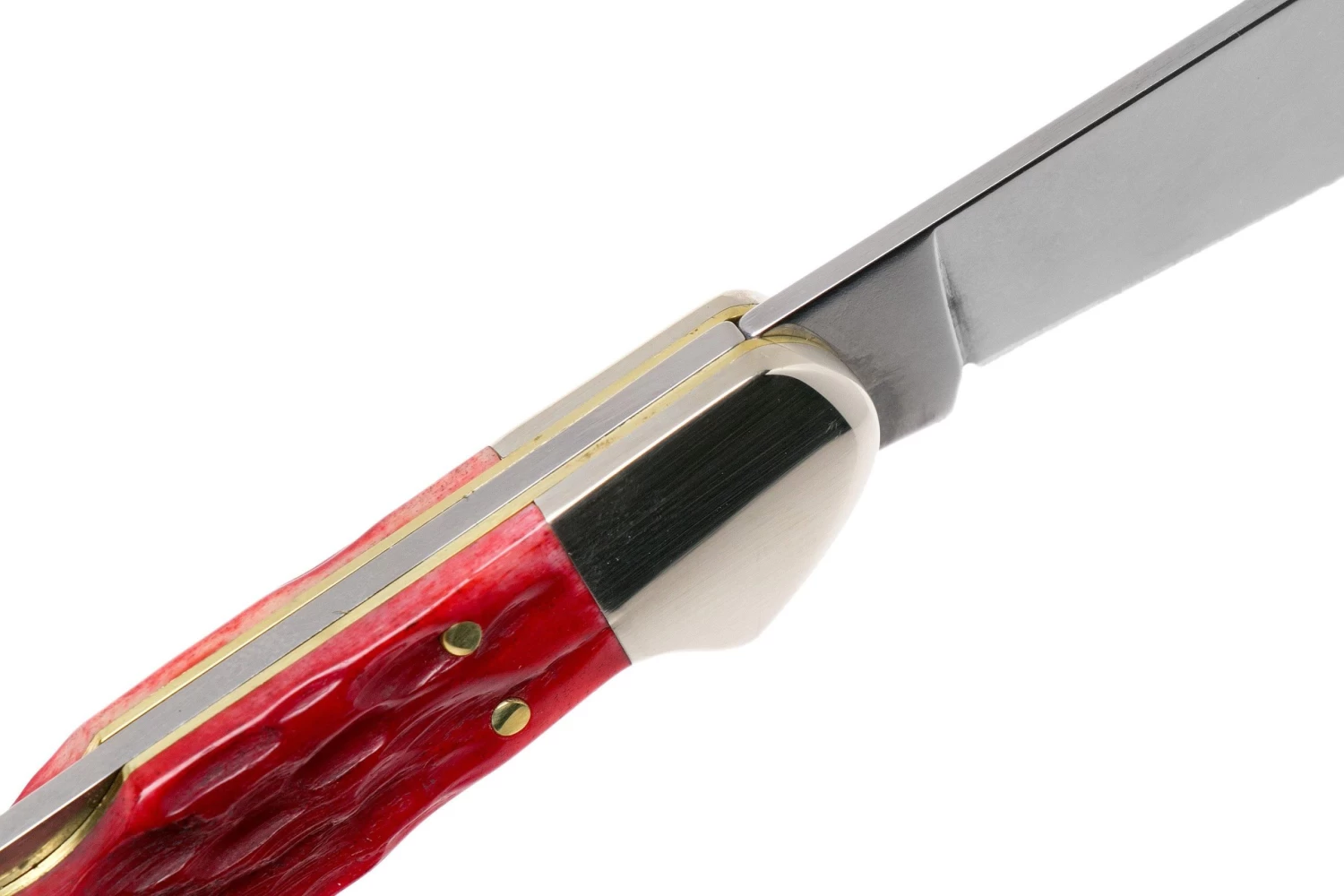 Le Case Mini Copperlock est un couteau de poche traditionnel avec un mécanisme de verrouillage mid-lock. Le Mini Copperlock arbore une lame de forme clippoint. On ouvre ce couteau à deux mains. La rainure sur le côté gauche de la lame offre une excellente adhérence. Il est frappant de voir à quel point ce couteau est mince. On le remarque à peine lorsqu’on l’a dans la poche. Le manche légèrement courbé vers le bas rappelle celui du Trapper. Son nom est inspiré du modèle Copperhead. On devine une ressemblance avec la mitre qui ressort nettement du manche. Cette mitre prévient le coin de la lame de rester coincé dans la poche de pantalon. La transformation du nom Copperhead en Copperlock vient, bien évidemment, de la présence d’un mécanisme de verrouillage.