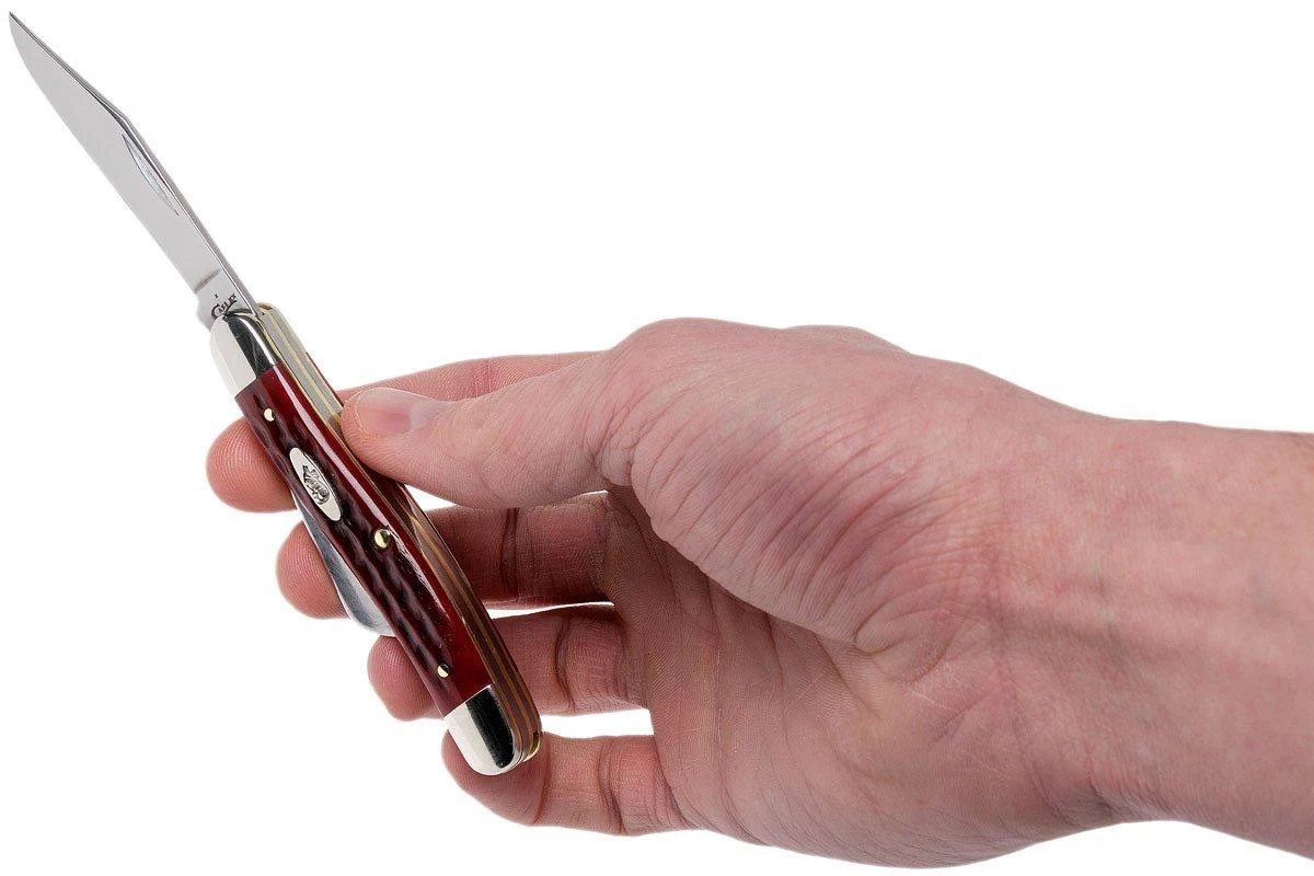 Le Case Medium Stockman est un vĂ©ritable classique dans le monde des couteaux de poche. Ce modèle est presque aussi vieux que l’ensemble de la catĂ©gorie traditionnelle elle-mĂŞme. Ce Case Stockman est une incarnation très pure de ce modèle classique. Il a trois lames : une lame clippoint comme lame principale , une lame sheepfoot de 5,0 cm et, bien sĂ»r, la lame Spey, qui est presque indispensable pour un Stockman. A l’origine, il s’agissait d’une forme de lame qui Ă©tait utilisĂ©e pour dĂ©peçage.