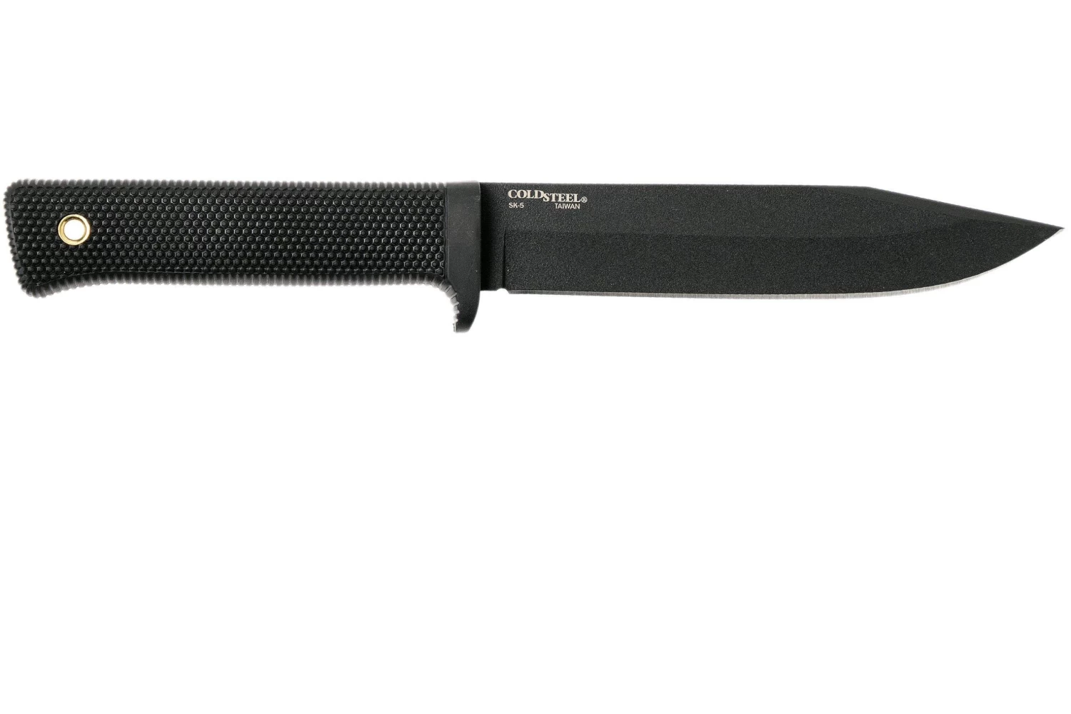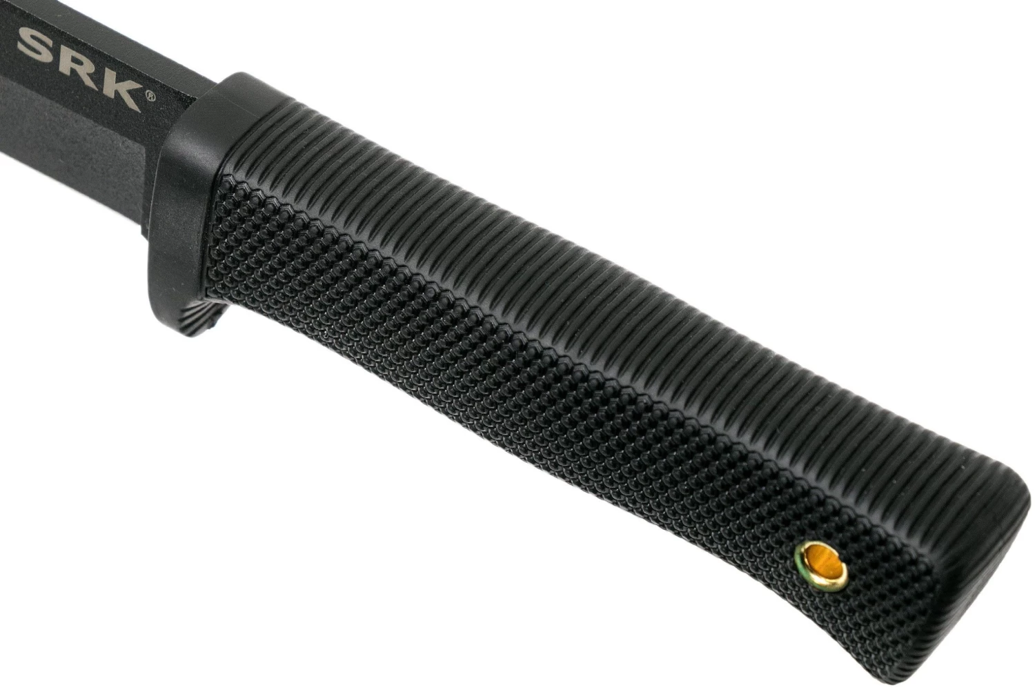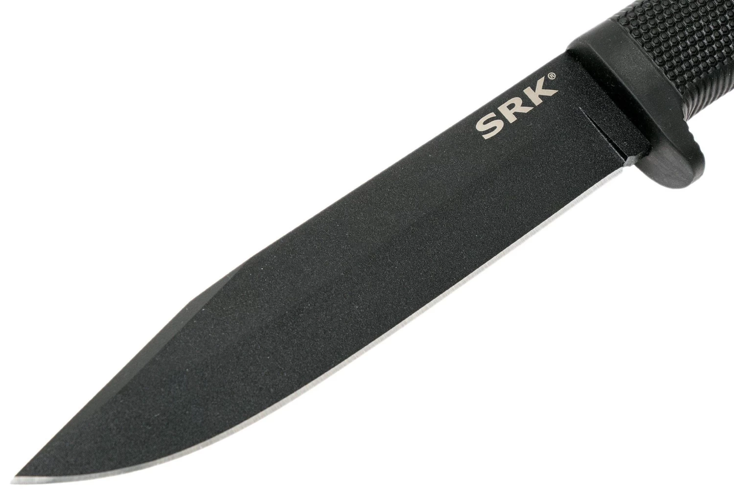 Le Cold Steel SRK est un couteau fixe très solide et robuste. SRK est l’abréviation de Search and Rescue Knife. Ce couteau de survie solide ne vous laissera jamais tomber. Non seulement pendant les voyages de survie, mais aussi pendant la chasse.