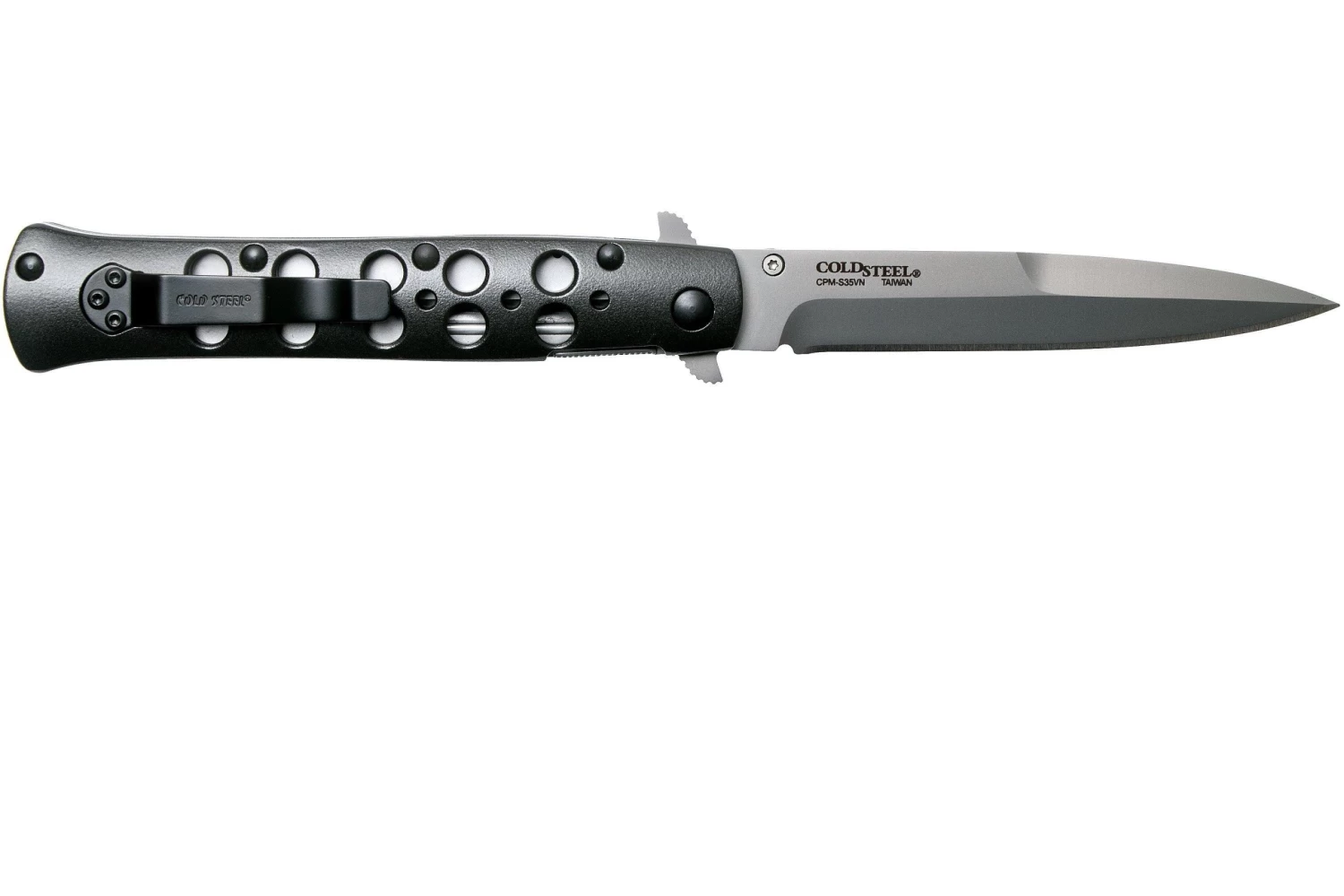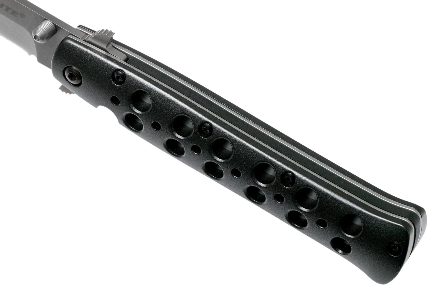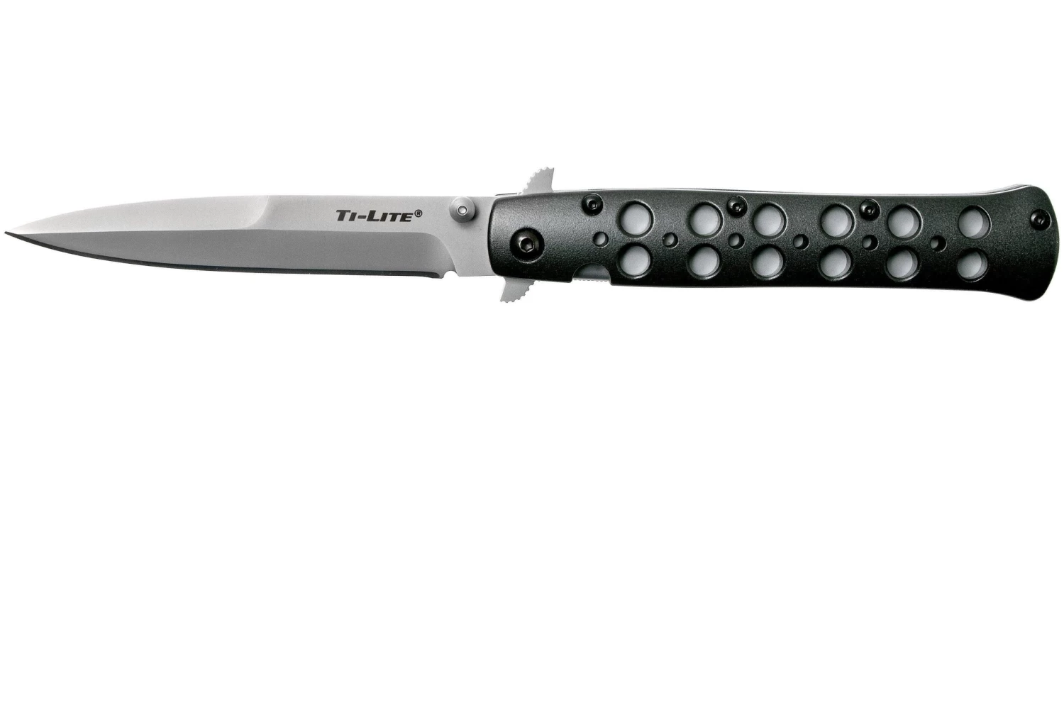 Le Cold Steel Ti-Lite est un couteau de poche mince, avec plusieurs possibilitĂ©s d’ouverture. Par exemple, le couteau peut ĂŞtre ouvert avec le flipper, le thumbrest ou le flip flop avant. La lame est en acier CPM S35VN. Un acier amĂ©ricain rĂ©sistant Ă la corrosion. Elle est en forme spearpoint fine et pointue. La poignĂ©e est en aluminium. Des trous y ont Ă©tĂ© fraisĂ© afin d’allĂ©ger le poids du couteau.