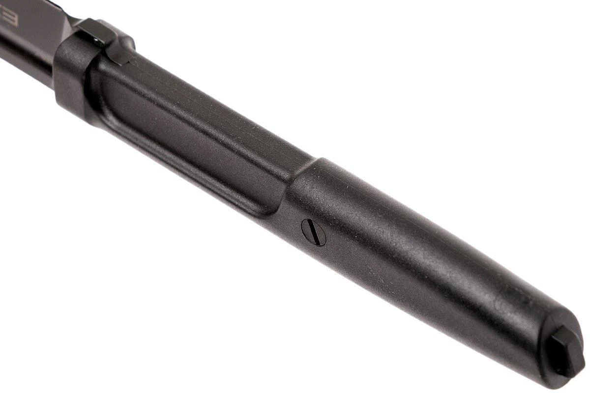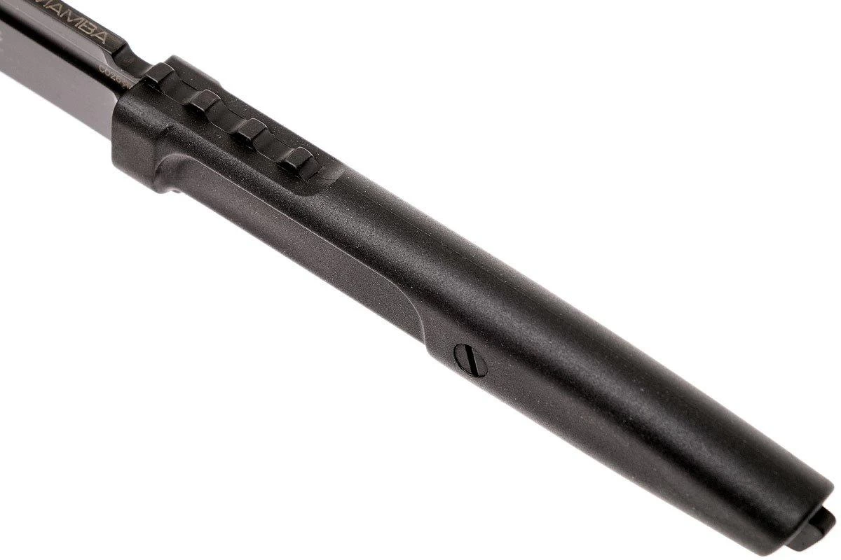 Le Extrema Ratio Mamba est un couteau fixe fin, avec une lame tanto caractéristique. Le Mamba tient son nom du serpent Mamba qui vit en Afrique. Son aspect fin est également comparable. Tous deux redoutables ! La lame est en acier inoxydable Böhler N690. Un type d’acier qui conserve très bien son tranchant tout en étant facile à aiguiser. La lame est de style tanto. Une forme pointue qui peut facilement percer. Les échancrures de chaque côté réduisent son poids et améliorent son équilibre. Le manche est en plastique Forprène durable. Confortable en main, même pour une utilisation intensive. La lame en pleine soie est visible à l’extrémité du manche.