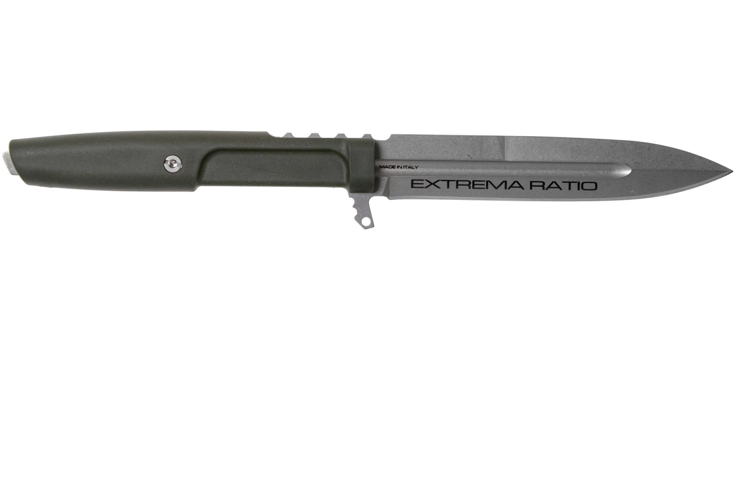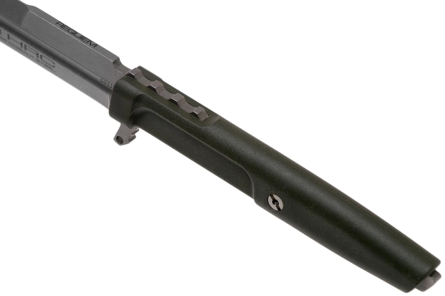 L’ Extrema Ratio Requiem est un couteau fixe fin qui rappelle la stiletto italienne. Son design fin permet de le porter en toute discrĂ©tion. Avec un poids d’Ă peine 85 grammes, c’est l’un des modèles les plus lĂ©gers chez Extrema Ratio. Le manche n’est pas fixĂ© via des vis sur le cĂ´tĂ©, comme chez la plupart des couteaux fixes, mais avec une seule vis au bout.