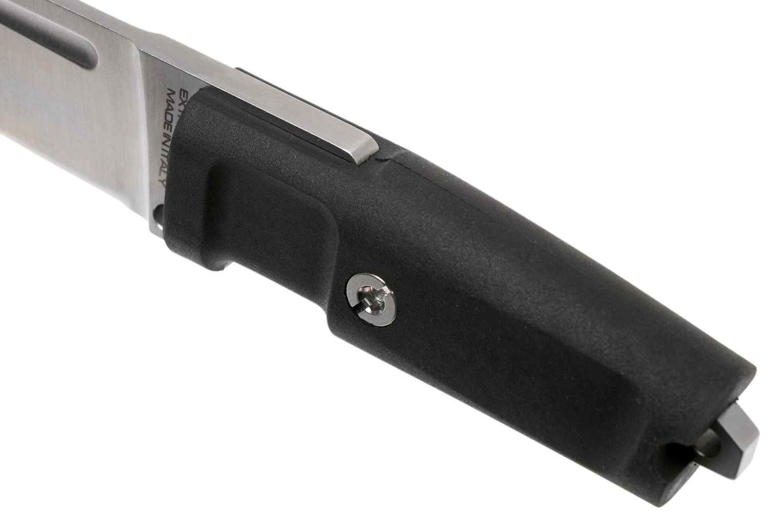 L’Extrema Ratio T4000 C est un couteau fixe tanto. Il a été conçu spécialement pour les fans de couteaux japonais. Ce qui est frappant sur le T4000C, c’est le rapport entre la hauteur et la longueur de la lame. Vu que la lame est relativement courte, il a l’air plutôt dodu. Avec, en plus, une épaisseur de lame de 3.6 mm, il en résulte un couteau bien robuste et résistant aux chocs.