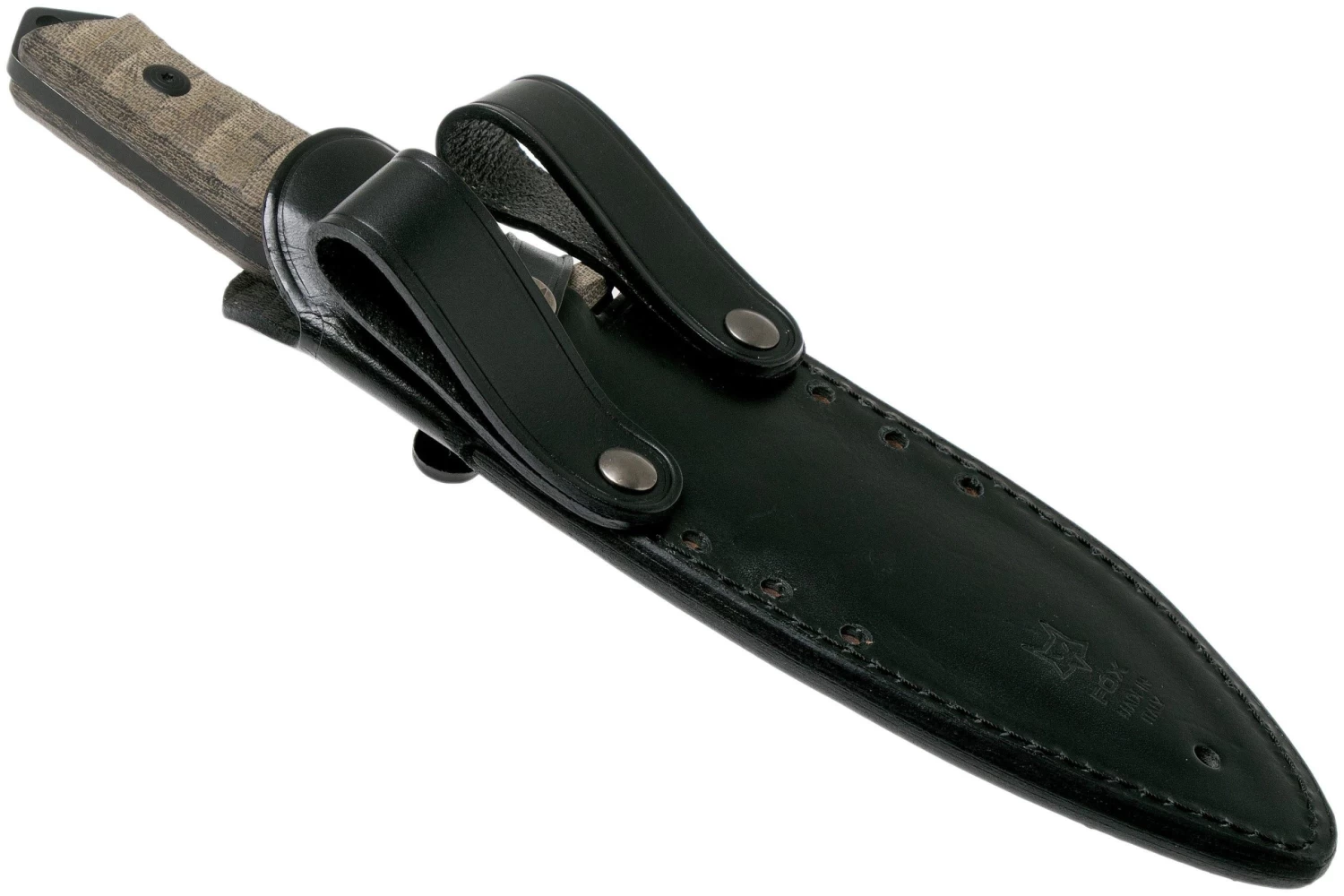 Le Fox Bushman FX-609 est un couteau outdoor grand et robuste conçu pour le bushcraft et la survie. C’est lorsqu’on le prend en main que l’on remarque que ce couteau est fait pour être utilisé intensivement. En effet, la lame est relativement épaisse et le poids n’est pas négligeable. Mais aussi de par l’émouture (grind) de la lame. Au milieu de la lame, on trouve une émouture plate. En descendant vers le tranchant on trouve une deuxième émouture plate qui ressemble à un scandi grind pour ensuite trouver le fil de la lame avec une forme en V. La coupe est donc très forte.