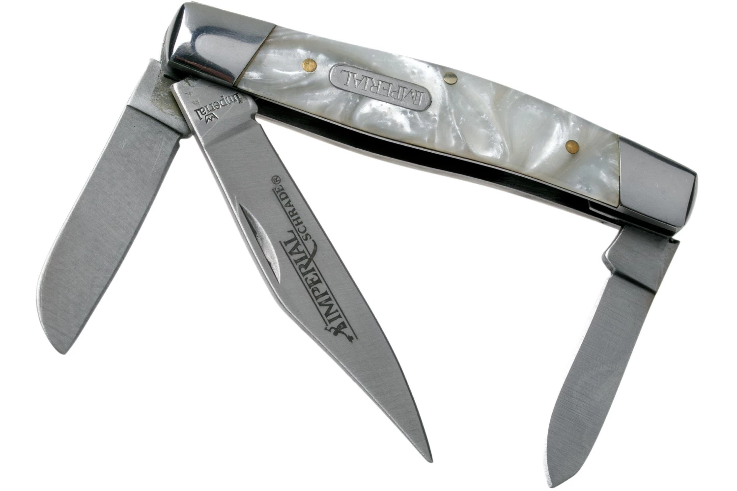 Le Imperial Large Stockman Cracked Ice IMP14L est un couteau de poche slipjoint classique. Le Stockman a trois lames : clippoint, sheepfoot et spey. On ne peut plus traditionnel et typique des modèles Stockman.