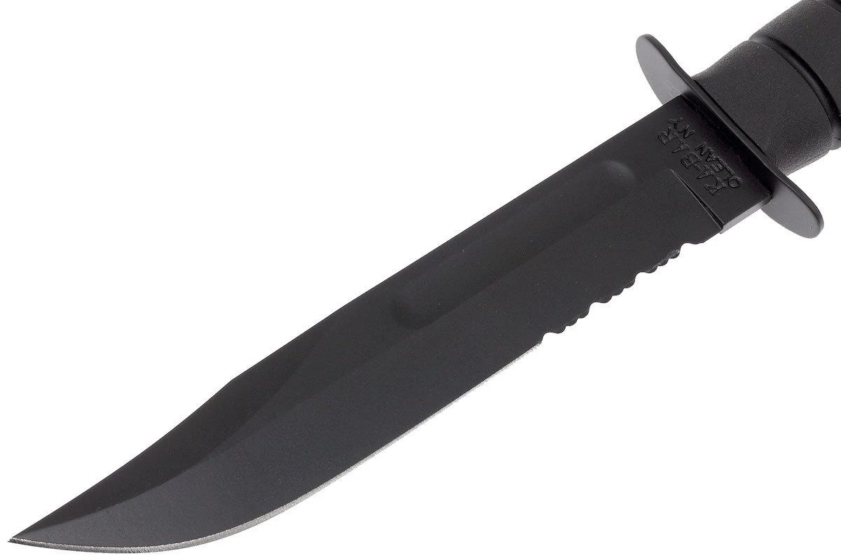 Le KA-BAR 1214 USMC est un couteau à lame fixe légendaire. C’est en 1942 que ce couteau a été désigné comme couteau de combat à lame fixe pour les soldats de l’U.S. Marine Corps. Depuis lors, ce couteau fait partie de l’équipement de base de nombreux soldats. Ce couteau est assez grand et semble très résistant. Le manche est doté d’une garde permettant de garder les mains loin du tranchant rasoir. La lame est en acier carbone 1095. Ce type d’acier n’est pas résistant à la corrosion. La lame est donc recouverte d’un revêtement noir pour faciliter l’entretien.