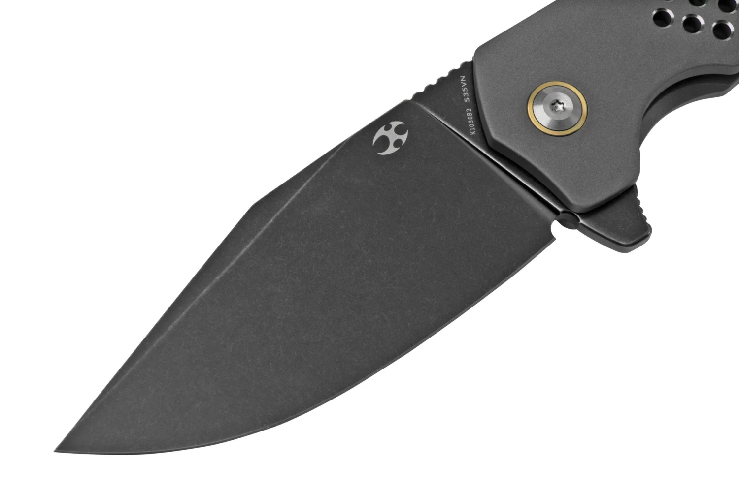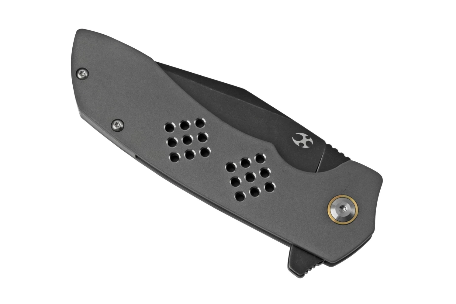 Le Kansept Entity est un couteau de poche robuste, conçu par Nalu Knives. Nalu est un coutelier débutant et très prometteur, originaire de Hawaii, qui s’est fait connaitre avec l’Entity. Les ouvertures au niveau du manche donnent au couteau un look original et permettent de l’alléger. On ouvre la lame avec le flipper. Elle s’ouvre de manière très souple, puis est maintenue en place par un solide framelock, doté d’un insert en métal. Le pouce vient se placer contre la butée au dos de la lame. On peut donc appliquer assez de force pour les petites tâches. Parfait pour toutes les coupes précises.
