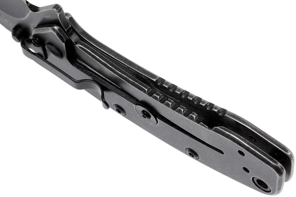 Rick Hinderer est le coutelier à l’origine du Cryo II. Et il en a fait quelque chose de magnifique. Un couteau très solide à un prix très intéressant. Fait en acier inoxydable, il est doté d’une finition stonewashed. L’ouverture assistée permet à la lame de se déplier rapidement mais tout en douceur. Le couteau s’ouvre d’une main grâce au flipper ou au repose-pouce, que l’on soit droitier ou gaucher. Le framelock maintient la lame en position ouverte. Aucun risque qu’il ne soit étiré excessivement. Une bride limite son mouvement. En bref, un système sûr et bien pensé.