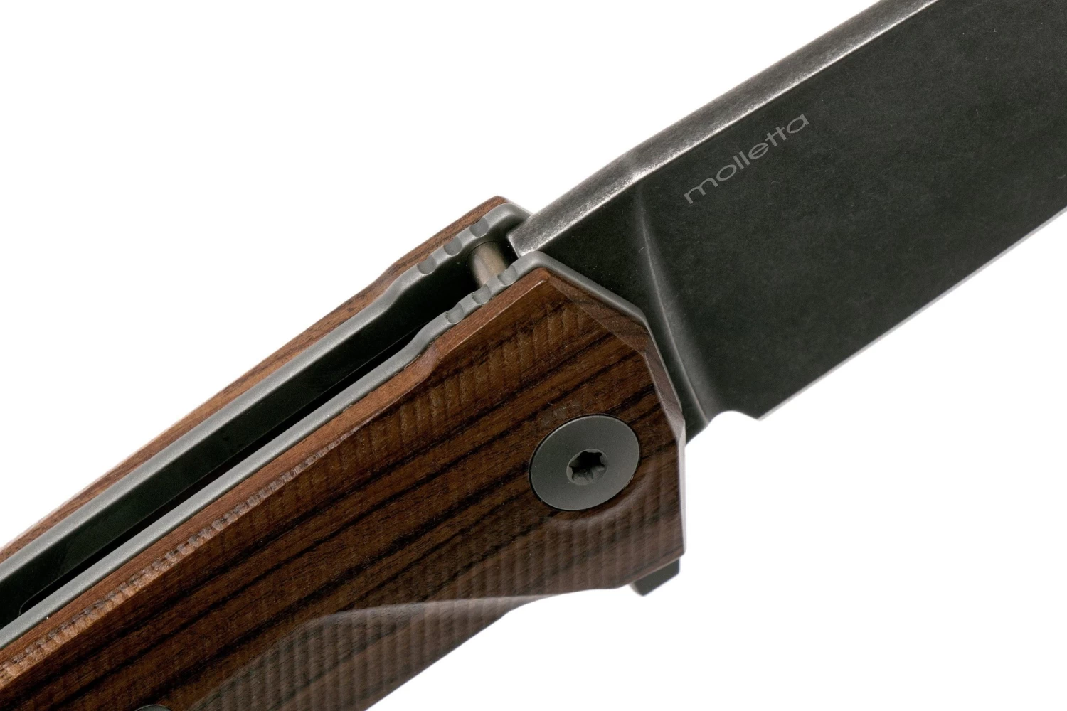 Le LionSteel KUR est un très beau couteau de poche italien, conçu par Michele « Molletta » Pensato. Les lignes exceptionnellement belles de ce design sont frappantes. Cet exemple typique du design italien n’est pas seulement joli, il tient aussi très bien dans la main. Le manche est en bois santos. Tout simplement superbe. Pour une meilleure adhérence, un beau motif d’adhérence a été fraisé. La lame est en acier Sleipner d’Autriche. Il s’agit d’une nuance d’acier à outils connue pour son bon équilibre entre la conservation du tranchant et la résistance à la rupture. Attention à l’humidité et aux acides (de fruits) : l’acier à outils n’est que partiellement inoxydable. Nettoyez et séchez votre couteau après usage. En ce qui concerne la finition de la lame, on a opté pour une finition stonewashed PVD permettant de masquer les traces d’utilisation. Un choix idéal pour une utilisation quotidienne.