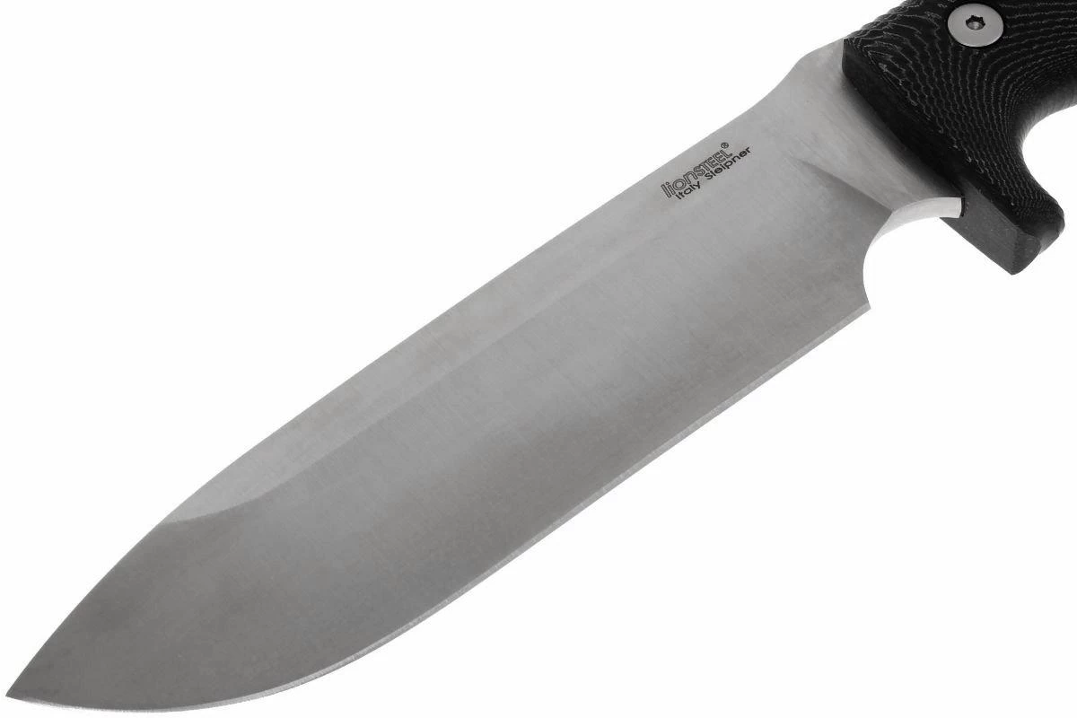 Le M7 est un couteau à lame fixe polyvalent destiné à une utilisation Outdoor. Ce couteau est basé sur une édition limitée conçu en collaboration avec le coutellier Michele ‘’Molletta’’ Pensato : le Carthago. Après quelques modifications, le M7 est né : un couteau avec une lame full tang et un manche en micarta. Le manche est largement assez grand pour l’intégralité de votre main. Un jimping a été ajouté pour une meilleure adhérence et un meilleure contrôle de la lame. La forme spéciale donnée au revêtement en micarta n’augmente pas seulement l’adhérence du manche mais ce design particulier permet aussi de reconnaitre immédiatement un couteau LionSteel. Ce couteau est unique de par son manche, usinée à partir d’une seule pièce de micarta. Dans un cas classique, deux pièces de micarte seraient fixées au manche par des rivets alors que dans le cas du M7, c’est la lame qui vient s’encastrer dans la pièce en micarta. Ce grand couteau est relativement lourd. La lame en acier Sleipner, mesure, 5,5 mm d’épaisseur. Combiné avec une dureté de 60-61 HRC, ce couteau très masculien est parfait à utiliser dans des condition extrêmes.