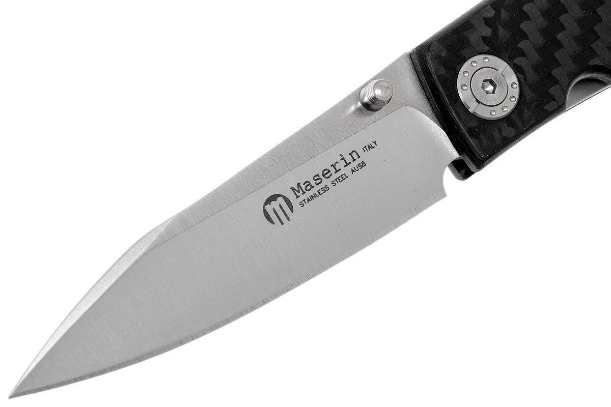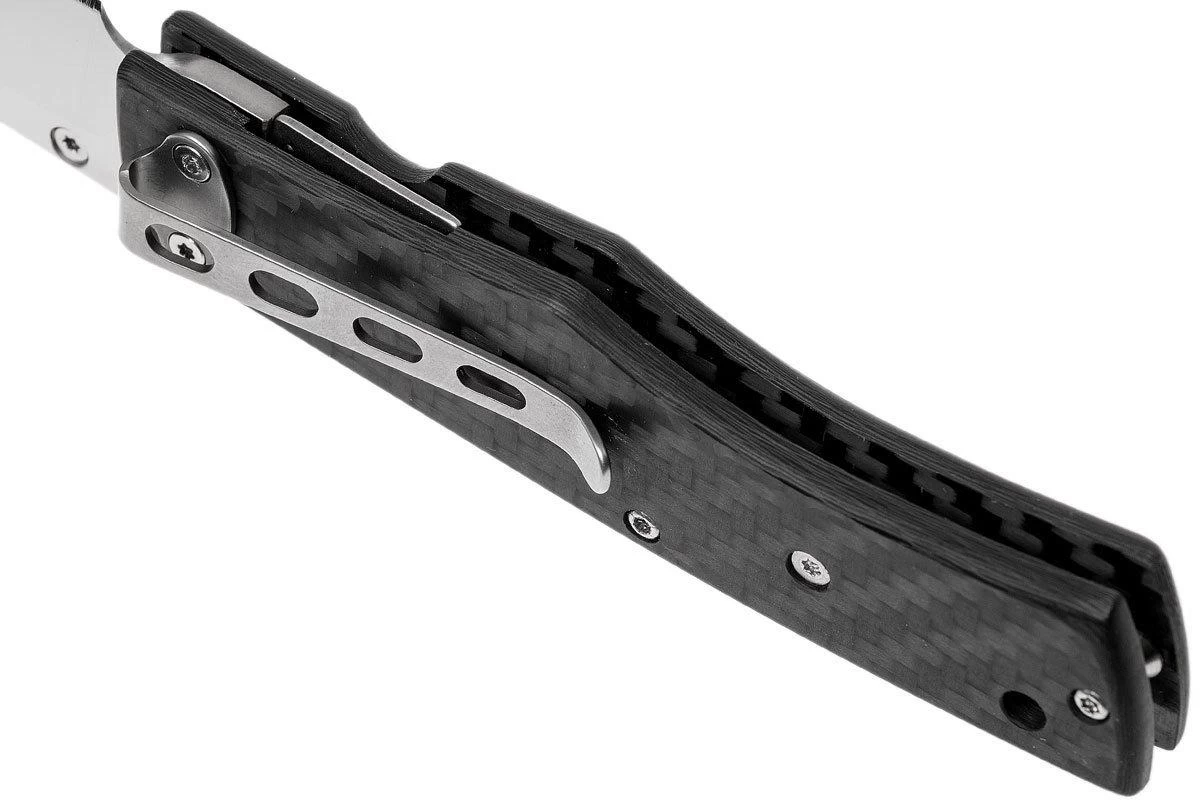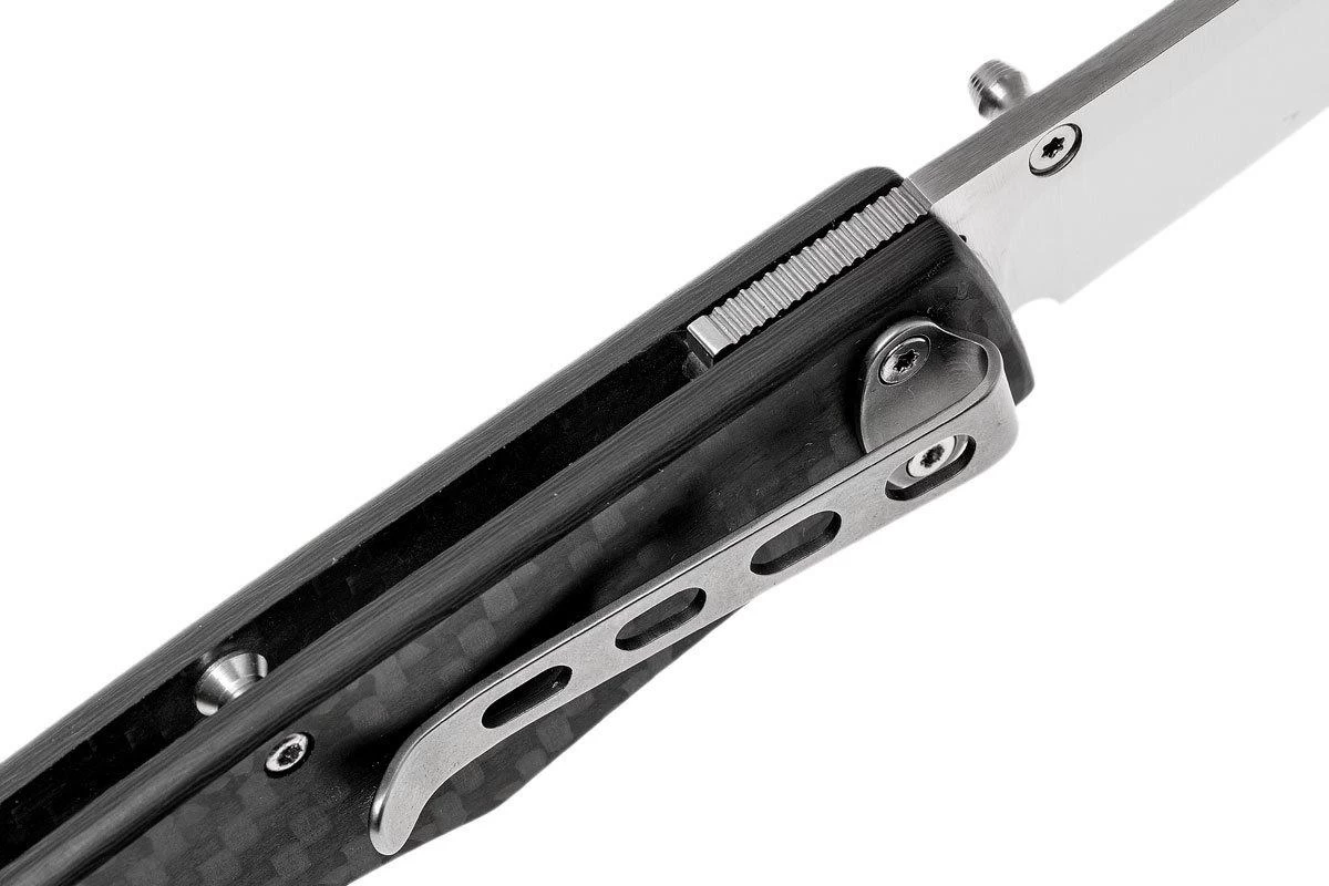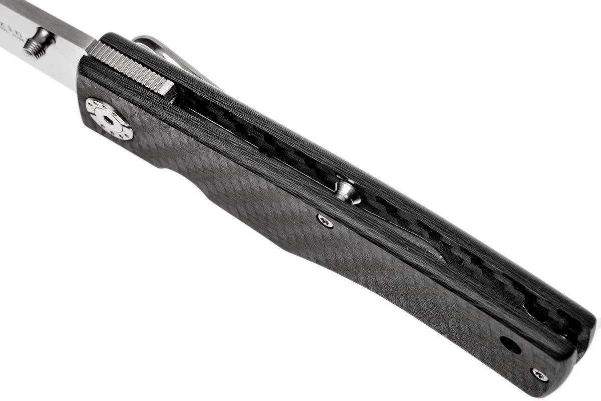 Le Maserin Carbon 392 est un couteau de poche léger avec un design excentrique. La forme du manche est particulièrement originale. Est-ce vraiment confortable en main ? Et oui ! Votre index et votre majeur ont une excellente prise et votre annulaire et petit doigt viennent se poser autour du reste du manche naturellement.