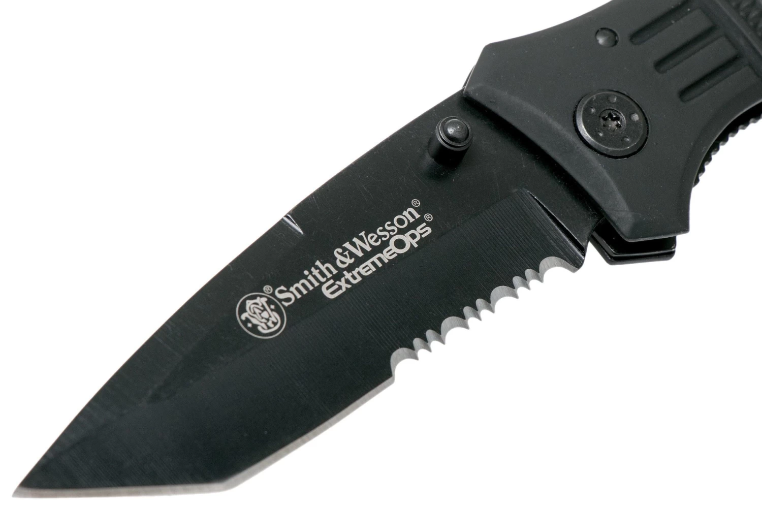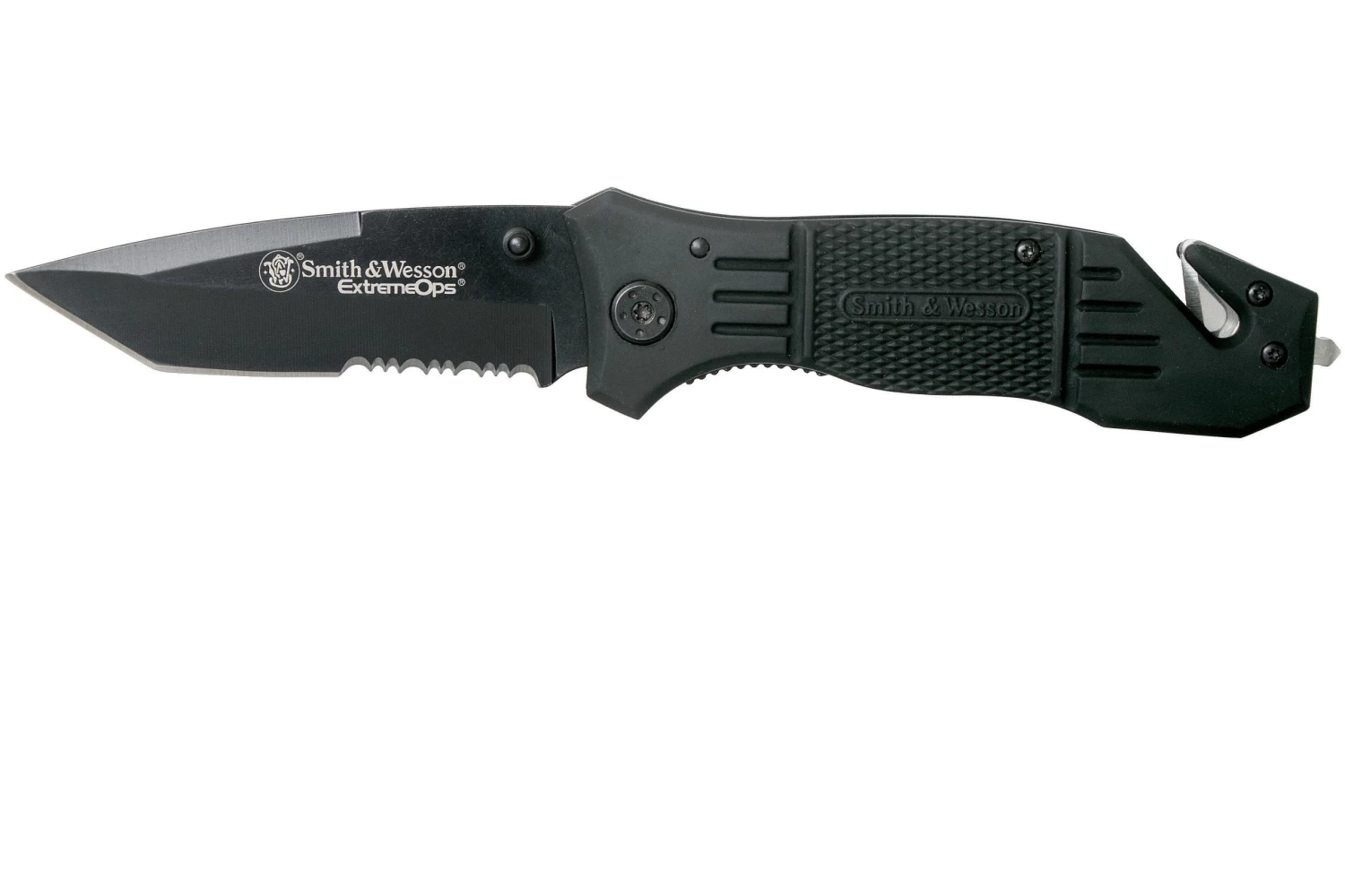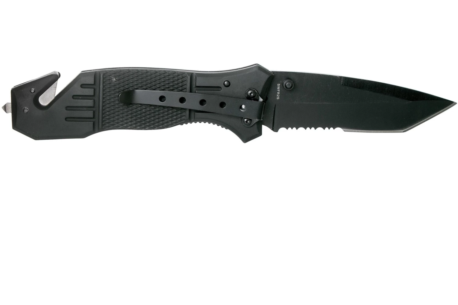 Le Smith & Wesson Extreme Ops SWFR2S est un couteau de sauvetage à un prix abordable. Il est doté d’une lame tanto, d’un brise vitre et d’un crochet de coupe. Un outil pratique et peu coûteux pouvant être utile dans de nombreuses situations d’urgence. On ouvre la lame facilement avec le repose-pouce ou le flipper et un linerlock la verrouille en position ouverte.
